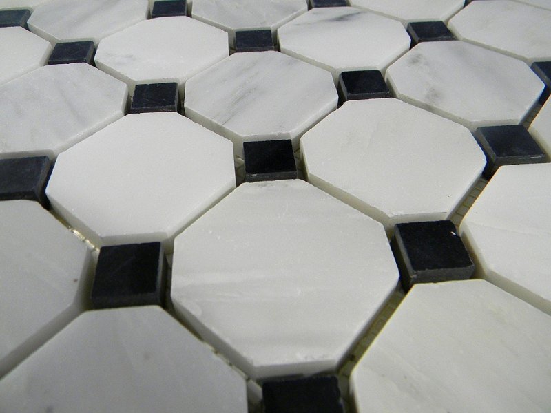Сегодня восьмиугольные изделия не утратили своей востребованности и применяются не только в интерьерах, пронизанных духом старины. Они вполне уместны в современных стилях – используются при отделке жилья и коммерческих помещений. На рынке представлены коллекции европейских производителей, которые выпускают подобные облицовочные материалы для стен в стиле пэчворк и с рисунком, имитирующим природный мрамор. Также есть мозаика в подобном формате.