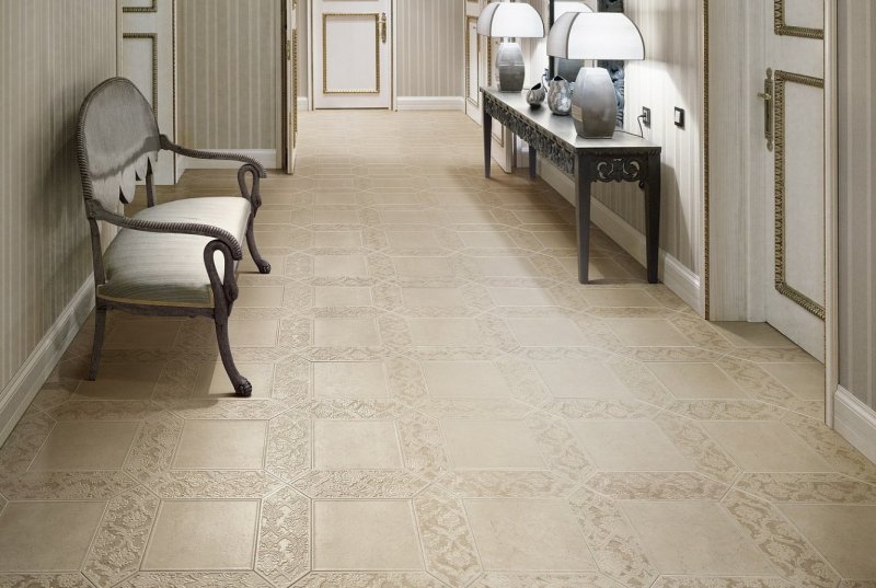 Также в больших холлах весьма колоритно будет смотреться составное панно из плитки в виде ковра.