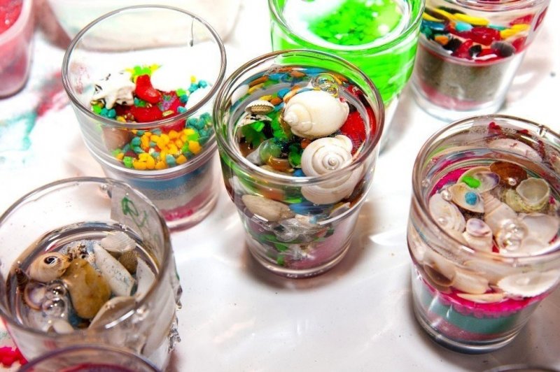 Если ваша фантазия не имеет пределов, изготовление гелевых свечей поможет раскрыть ваш потенциал. Такие изделия выглядят просто волшебно благодаря прозрачному материалу, в котором видно изысканный декор. Свечи из геля станут прекрасным подарком для друзей, родственников и коллег.