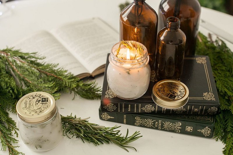 Декорирование – увлекательный процесс. В качестве украшений подойдет кружево, джутовый шпагат, подарочная бумага, нити бисера, ленты, искусственные цветы, сухие веточки трав и полевых цветов, дольки цитрусовых. Если вы любите пряные ароматы, используйте в оформлении свечи кофе или корицу.