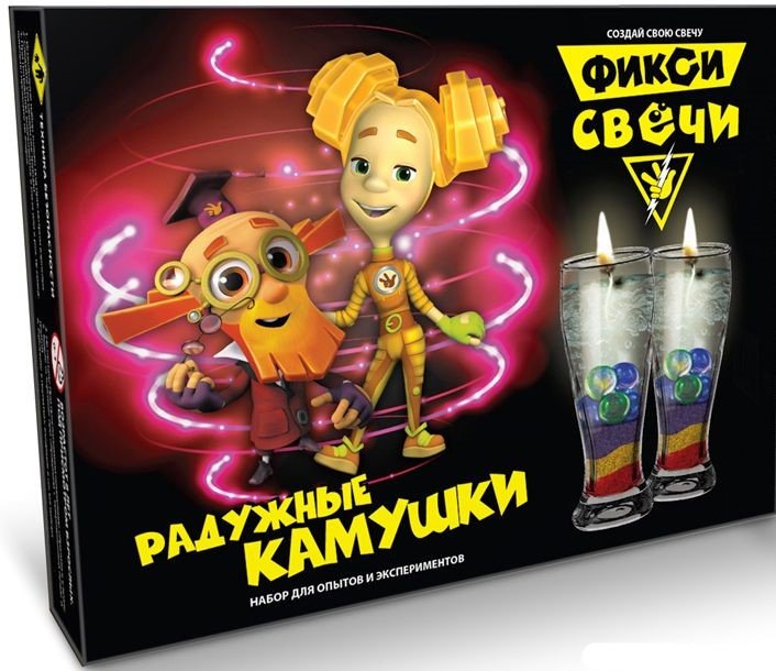 В наборе «Фиксики»от фирмы CENTRUM представлен только материал, фитиль, красители и формы – инструменты и емкость отсутствует.