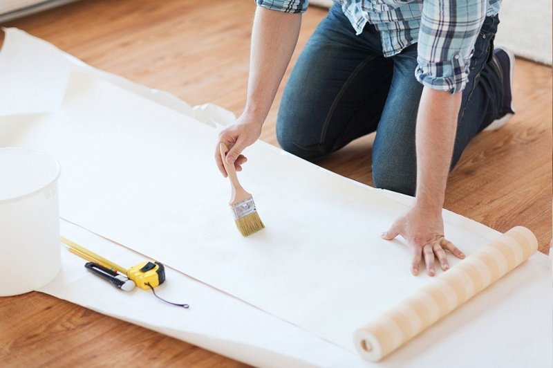 Современные флизелиновые и виниловые обои не нуждаются в нанесении клея непосредственно на полотно. Достаточно хорошо промазать стены, и материал легко зафиксируется. Если места стыков не приклеились, можно дополнительно нанести на них состав уже на стене.