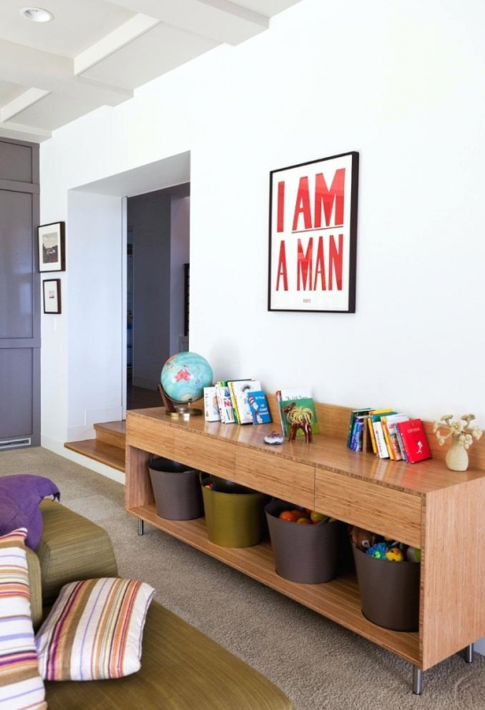 Ящики для игрушек в интерьере детской комнаты Для рациональной организации пространства в помещении стало модно использовать коробки, ящики и корзины. Кому-то может показаться, что такие емкости априори делают интерьер неряшливым и переполненным. Но на самом деле это совсем не так: напротив, если подобрать ящики в соответствии с тем стилем, в котором выдержана комната, вы сможете внести в обстановку интересные нотки. Содержание Разновидности ящиков для хранения вещей Используемые материалы для изготовления контейнеров Металлические ящики для хранения вещей Корзины из пластика Ящики, выполненные из ротанга Коробки для вещей из картона Деревянные ящики Ящики для хранения вещей в интерьере квартиры Подобные изделия для хранения вещей удобны в быту, а также отличаются своей мобильностью. Кроме того, в магазинах представлен огромный выбор контейнеров разных размеров и типов, которые позволяют удобно разместить различные мелочи, детские игрушки, книги, вещи, обувь и даже инструменты. Такие ящики и корзины для хранения органично впишутся в любой интерьер. Оригинальные плетеные корзины для чертежей Интересная корзина для игрушек в детской стеллажах открытого типа, полках шкафов, тумб, комодов. Существуют также такие модели коробок, которые хранятся под кроватью, или представляют собой просто отдельно стоящие конструкции. Как правило, такие контейнеры намного вместительнее, они могут комплектоваться колесиками для перемещения. Емкости и ящики для хранения вещей подразделяются на две категории — закрытые и открытые. Клапан способен откидываться или полностью сниматься. Более практичными в сравнении с их открытыми собратьями считаются контейнеры, снабженные крышкой – она нужна для защиты вещей от пыли, солнечных лучей, влаги, маленьких детей и четвероногих домашних любимцев. Высота и форма изделий зависит от его назначения, а также от материала, из которого изготовлен ящик. Независимо от конструкции емкости, борта и дно обычно имеют жесткий каркас для максимально удобного использования. Некоторые модели имеют мягкие или жесткие ячеистые конструкции с отсеками разных размеров. Для удобства контейнеры оборудуются замками, ручками. По своему назначению лотки и ящики бывают универсальными или специализированными, то есть предназначенными для игрушек, инструментов, бутылок, кухонных принадлежностей, книг и других мелочей. Яркий интерьер детской комнаты, оформленный в стиле ар-деко пластик; металл; дерево. Металлические ящики для хранения различных инструментов и материалов Основные преимущества металлических ящиков для хранения вещей: высокий показатель прочности; долговечны; надежность фурнитуры; удобство переноски. К недостаткам стоит отнести подверженность коррозии. Совет! В металлических ящиках удобно хранить мужские рабочие инструменты, стеклянную тару. Пластиковые контейнеры прекрасно подойдут для хранения детского конструктора Довольно часто они оснащены крышкой, что очень актуально, когда контейнер стоит под кроватью. Единственный минус состоит в том, что такие ящики не смогут выдержать сильную нагрузку, поэтому их не стоит перегружать. Конструкции из пластика обычно используют для хранения овощей, фруктов, детских игрушек, обуви и многого другого. бежевого, рыжеватого. Отлично подойдут для использо