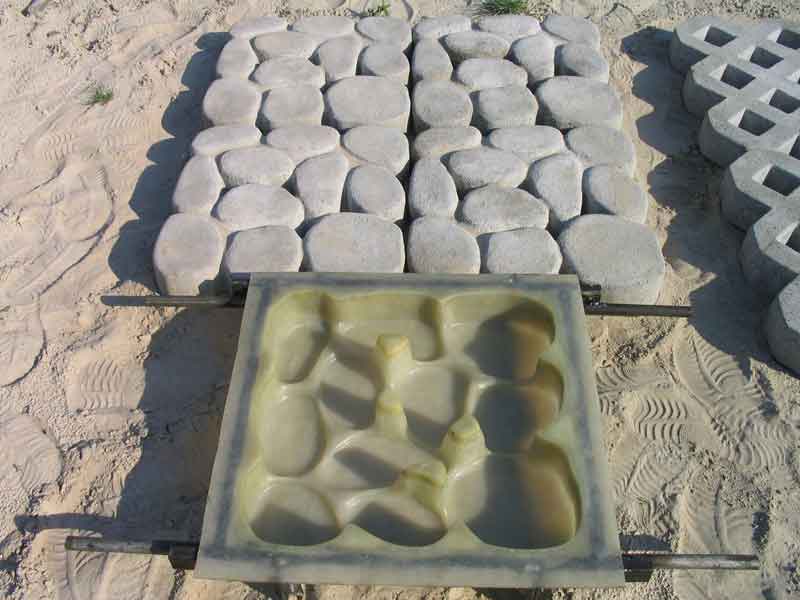 Делают шаблоны из полиуретана, силикона, пластика и пр. Силиконовые применяют с целью создать необычное мощение. Из металлических листов или дерева получится неплохой самодельный трафарет. Заводской решетки хватит по меньшей мере на 200 циклов изготовления.