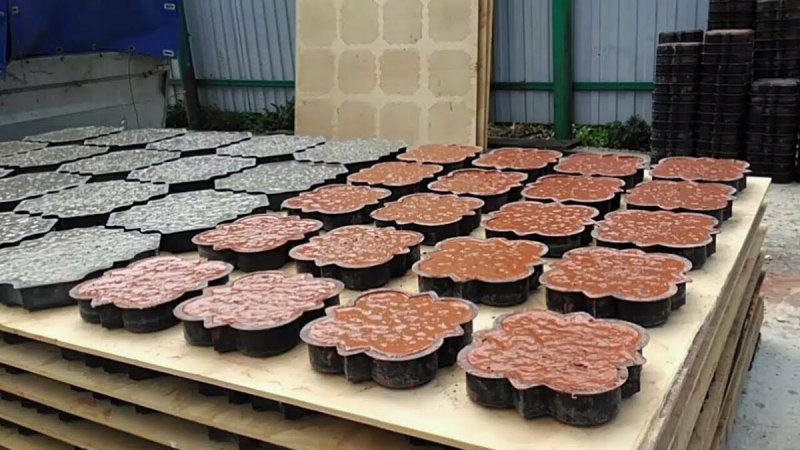 Формочки бывают постоянными, полупостоянными и разовыми. Первый тип применяют для отлива большого количества фоновой брусчатки. Полупостоянные делают из термически устойчивых материалов. Разовые после первого использования заметно деформируются и при укладке крупных композиций не подойдут. Полиуретан и силикон стали популярными материалами для изготовления в домашних условиях. Формы из них могут прослужить долго, а качество плитки будет на достойном уровне.