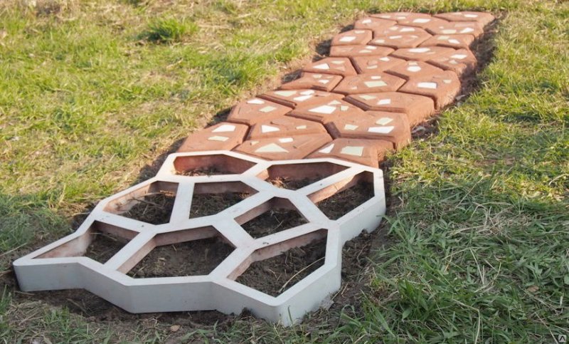 Используют пластиковые, полиуретановые, силиконовые, деревянные, металлические и прочие шаблоны. Помимо материала, формочек и возможностей, которые они дают, следует определиться с конфигурацией готовых изделий. Нельзя спешно выбирать форму плитки. В то же время, если желания создавать необыкновенные рисунки нет, хватит шестиугольников, многоугольников с закруглениями, а также плитки волнистой и кирпичной формы. Первым делом нужно продумать планировку на участке, до мелких деталей.
