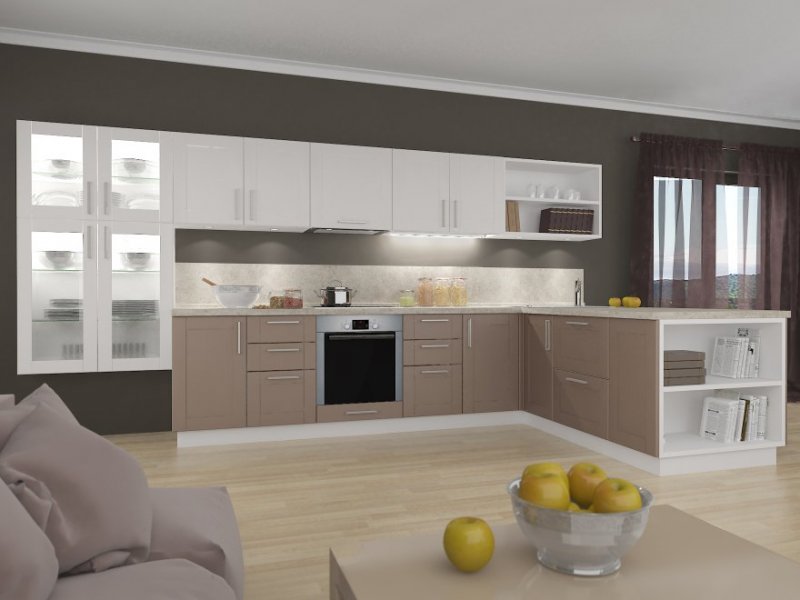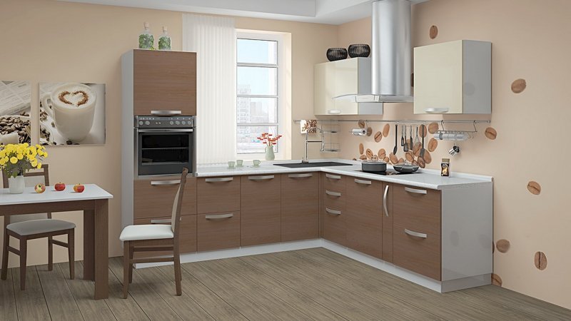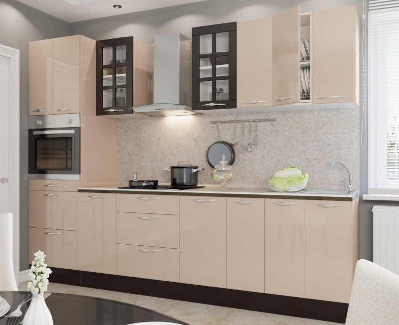 Светлые оттенки капучино лучше во всех смыслах. Для темных и тесных кухонь, для светлого фона, для необычного темного оформления с потребностью в контрасте. Из светлых комбинаций гораздо лучше получаются полосы и переходы.