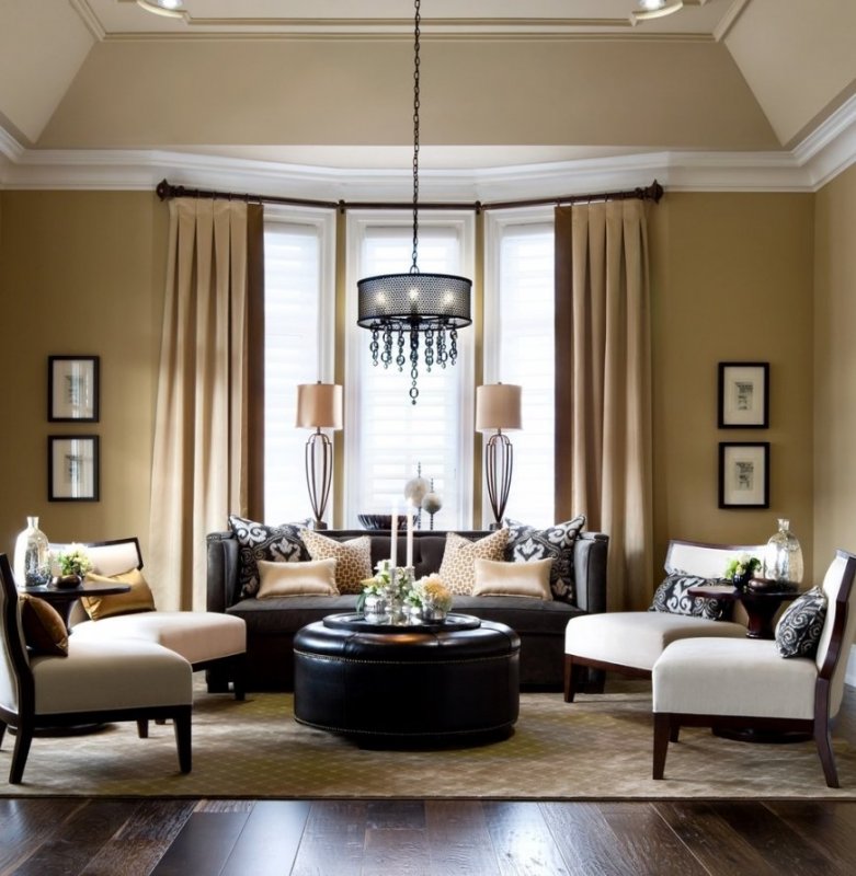 Историческая классика была бы недоступной без накидок из дорогих тканей, ваз и расписной посуды. Если удастся согласовать все эти принадлежности с общей кофейной палитрой, то результат получится выше всех ожиданий. В светло-коричневую комнату не помешает приобрести драпированные шторы. Их можно будет полностью закрывать и подсвечивать.