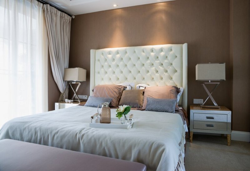 Желающим добавить коричневый цвет в спальню при отсутствии вариантов стоит подумать о рисунках и обоях. Под это можно выделить всего одну стену. Вид при этом будет отличный, необязательно отделывать так все пространство.