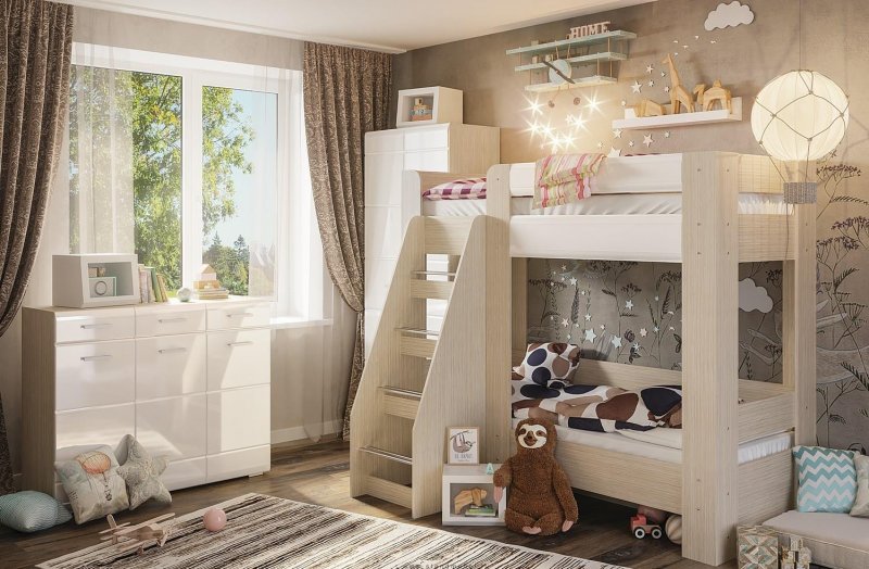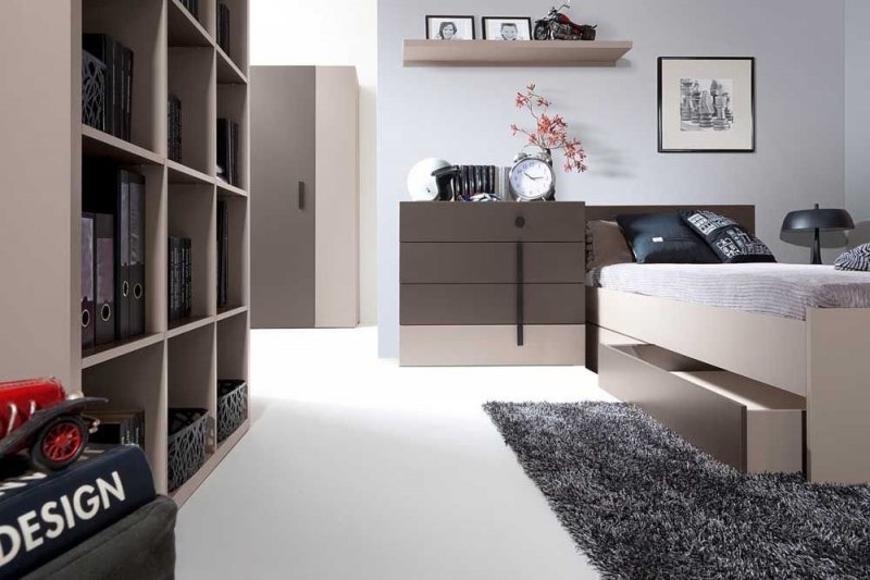 В этом случае кофейные оттенки, скорее, исключение, ведь взрослые стараются оформлять детские максимально ярко. Цвет капучино больше подойдет для комнат подростков. Там можно обустроить что-то ненавязчивое в духе провинциальной обстановки или на экологическую тематику. Подрастающему поколению принесут пользу большие стеллажи, просторные ящики для вещей, а для деревянных предметов светло-коричневые и кофейные тона — привычное дело. Оттенок капучино не помешает, если у ребенка есть много мягких игрушек. Имитирующий кожу животных светло-коричневый войдет в единое цветовое сочетание. Тему развивают, распределяя «зверюшки» по всей комнате.