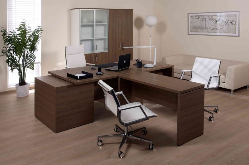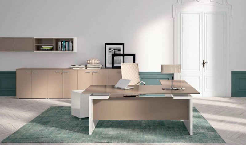 Кофейным цветом иногда заменяют банальный коричневый. В кабинетах обычно есть много деревянных вещей, так что идея хотя бы разбавить коричневый светлыми мебельными элементами или окрасом стен не станет пустой тратой времени.