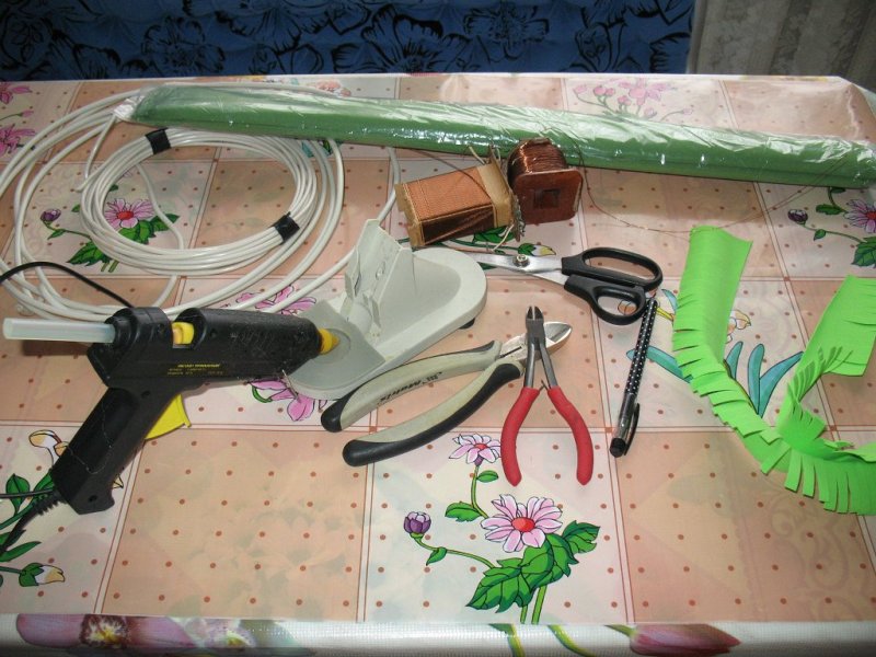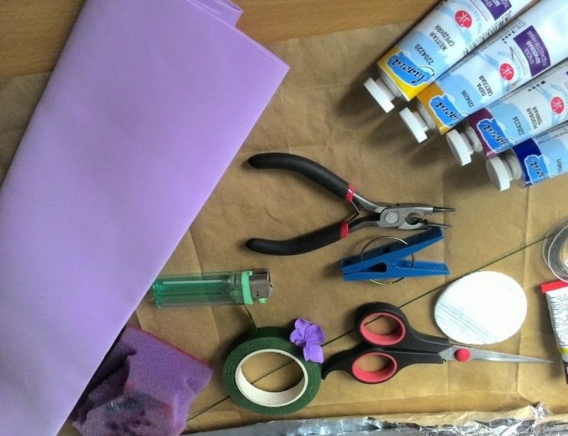 Работать с декоративными пенистыми листами проще специальными инструментами. Также потребуется соблюдать некоторые правила, запастись трафаретами и шаблонами. Для создания различных элементов в виде ножек цветков, лепестков, листов потребуются следующие материалы и приспособления: