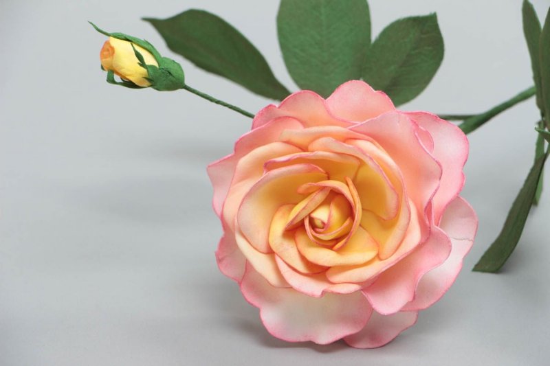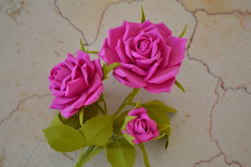 Розы из вспененной резины, как и прочие поделки, не боятся солнечного света и влаги. Изделия из фоамирана можно размещать на подоконнике, в ванной комнате, на кухне. Но, несмотря на стойкость к теплу и влажности, поделки требуют бережного отношения и определенного ухода.