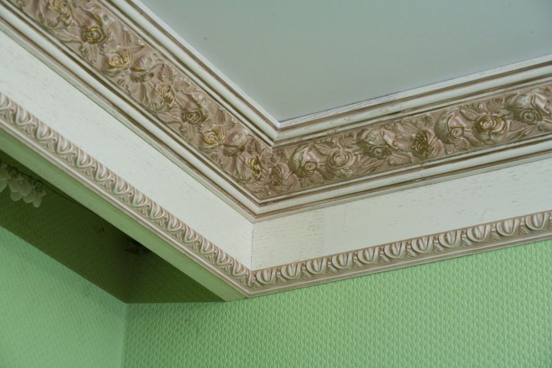 В небольших комнатах квартир с невысокими потолками широкая галтель будет смотреться тяжеловесно. В помещениях с высотой потолка до 2,5 м лучше использовать бордюры с шириной до 3,5 см, в комнатах с потолками высотой 2,5 — 3 м – от 4 до 6 см.