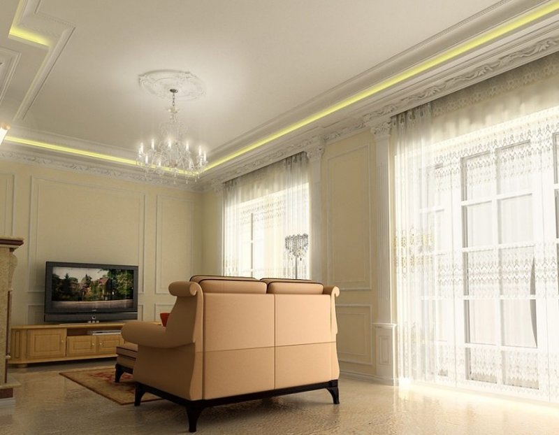 Главное достоинство потолочных плинтусов в том, что они красиво обрамляют потолок, превращая его в произведение дизайнерского искусства.