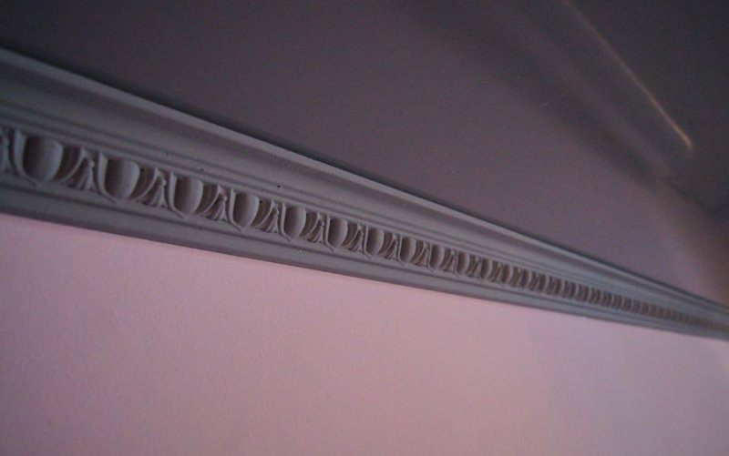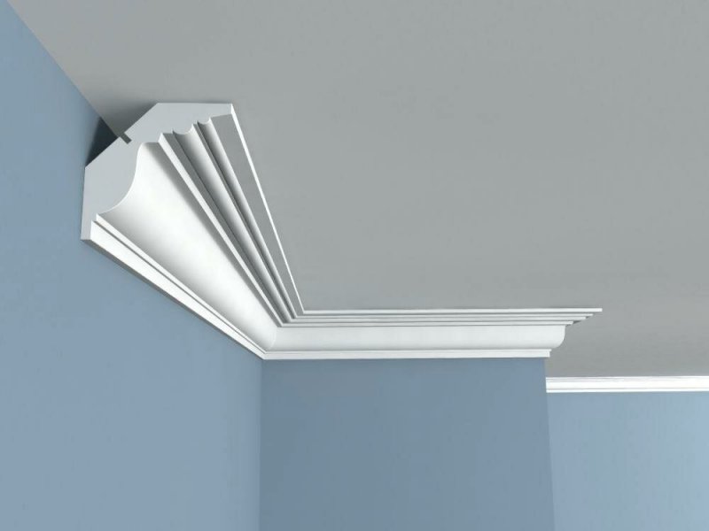 В просторных комнатах, напротив, широкий багет будет более чем кстати. Он подчеркнет впечатляющие размеры и важность помещения. Здесь узкий плинтус будет смотреться бедно и инородно. Для подобных случаев идеальны карнизы шириной от 6-10 см и более.