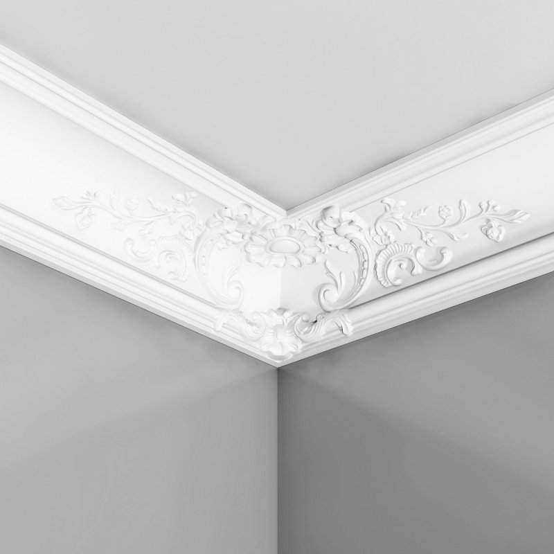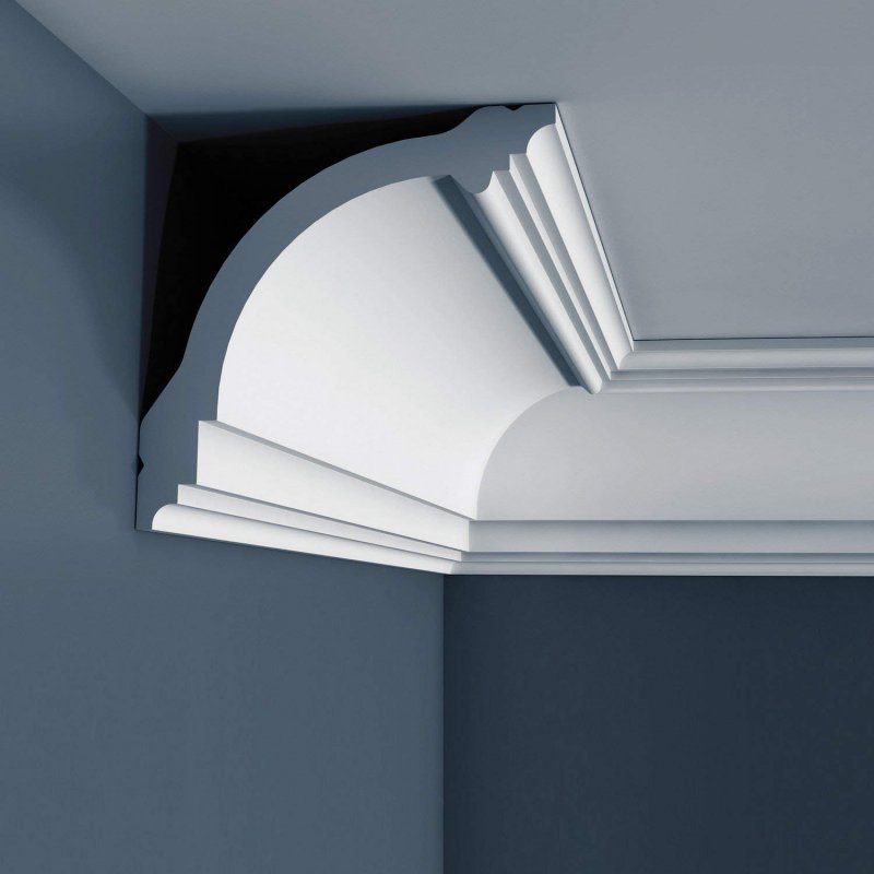 Стандартная длина плинтуса 2 м, а его ширина варьируется от 1 до 40 см. Выбор ширины потолочного плинтуса зависит от параметров помещения и его конфигурации.