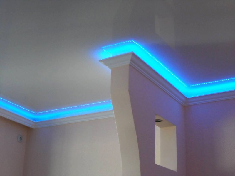 хай-тек – простые формы и четкие линии карнизов со светодиодной подсветкой, встроенной в короб, идеально впишутся в царство техники, стекла, пластика и металла;