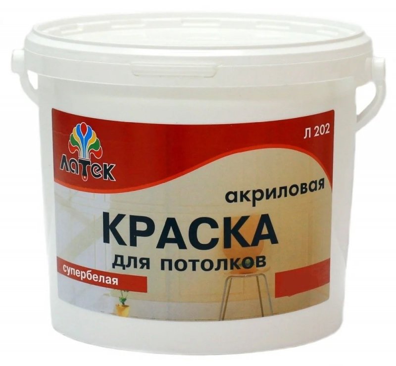 Латексная краска не имеет запаха, не оказывает негативного влияния на здоровье. Ее можно использовать для работы в помещениях без проветривания. До полного высыхания потребуется от 30 минут до 1 часа. Отличная адгезия позволяет окрашивать потолки из практически любого материала.