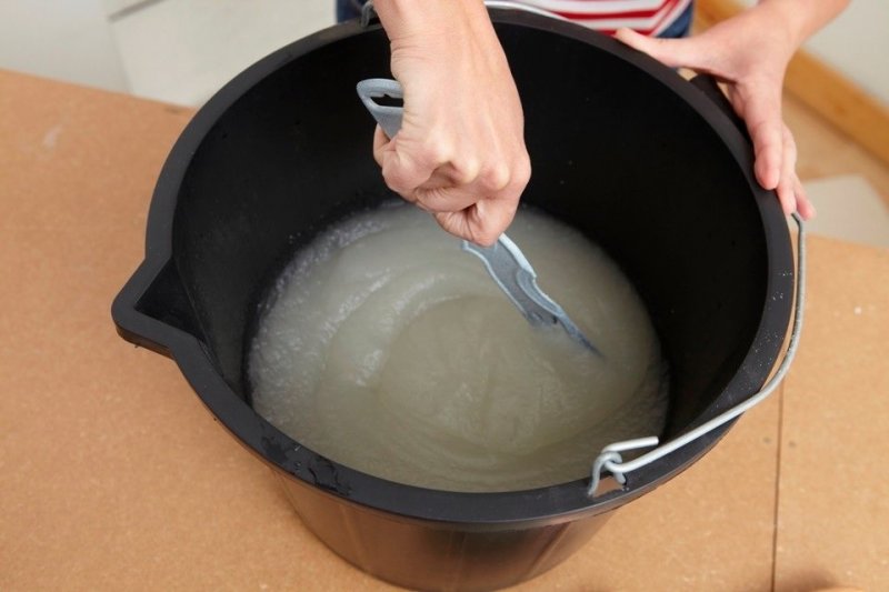 Недорогая смесь состоит из мела, воды, клея и пигментов. Ее можно купить готовой или сделать самостоятельно. Используют следующий рецепт приготовления клеевого состава для потолка: