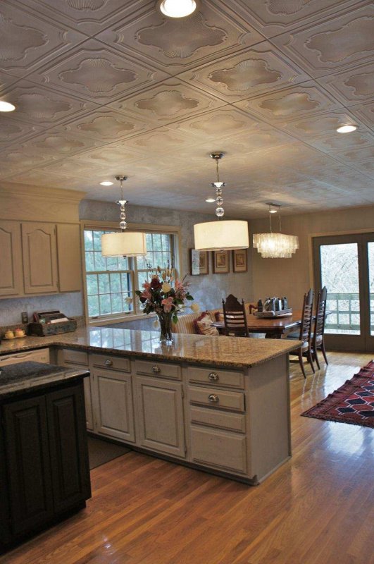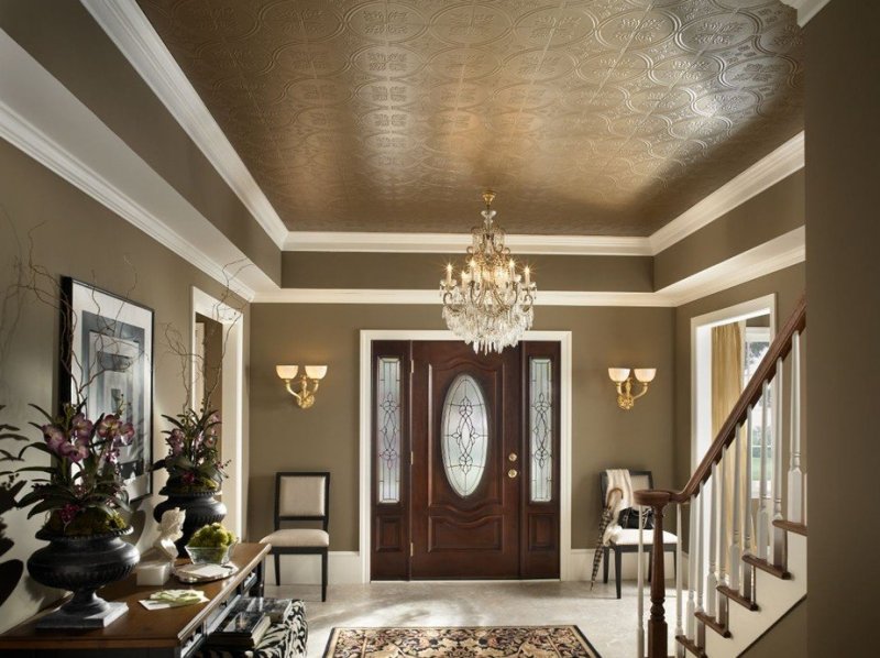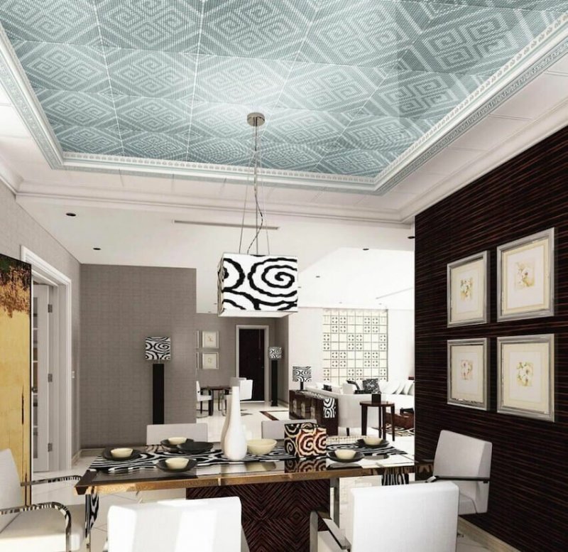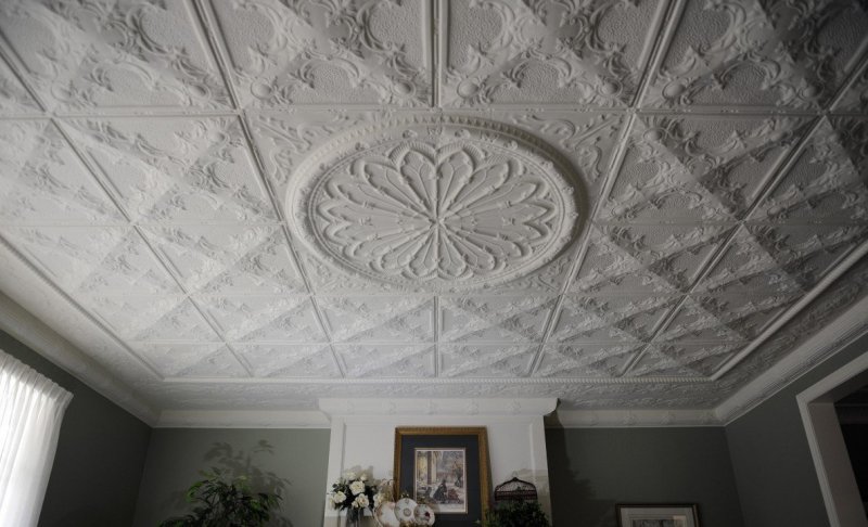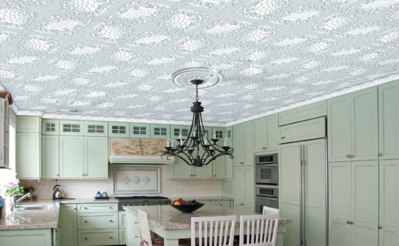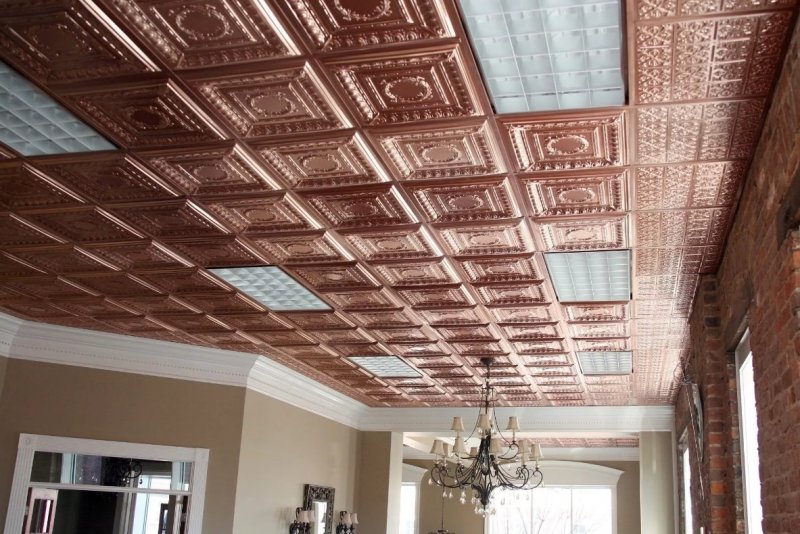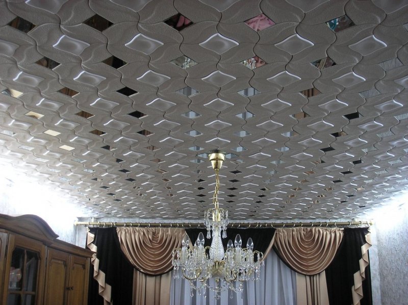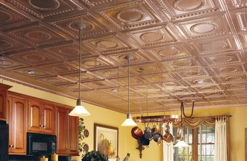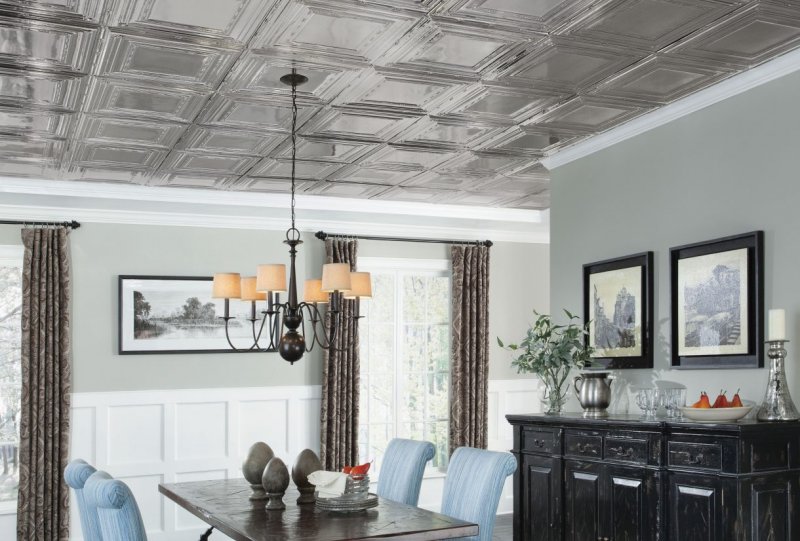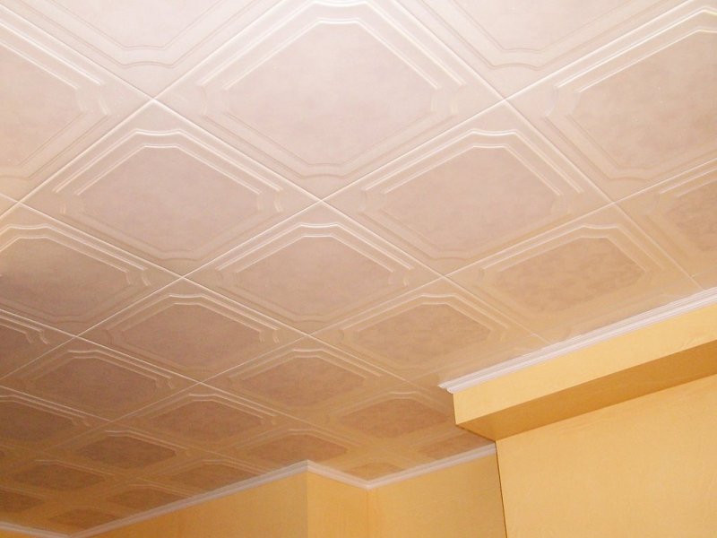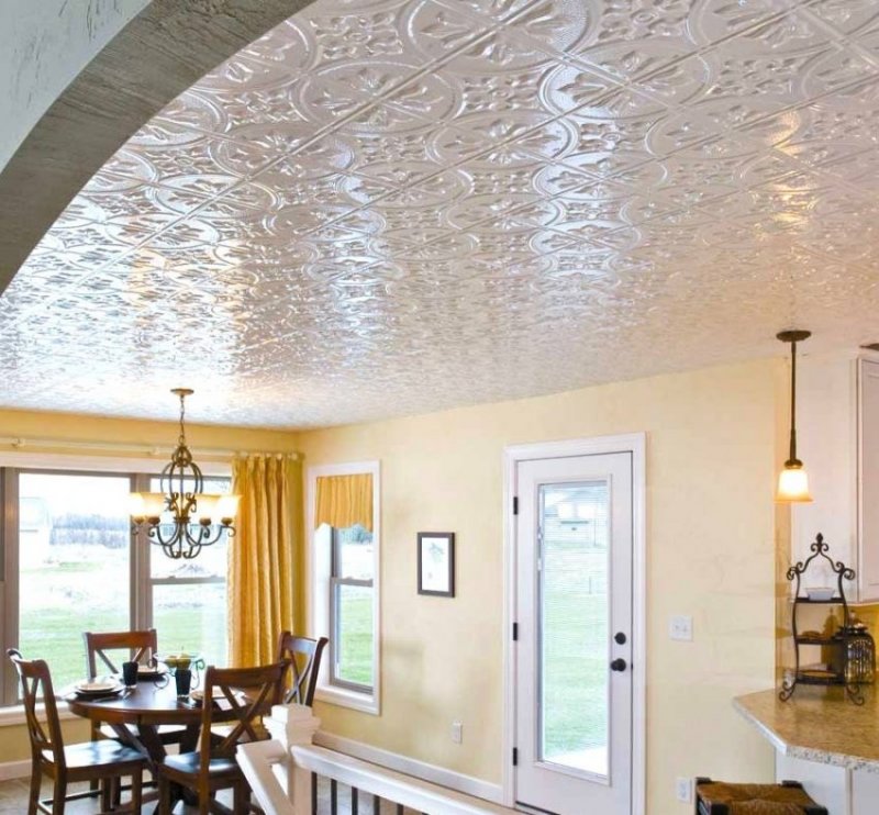 разнообразие форм – помимо стандартной существует множество вариантов дизайнерской плитки, которая позволяет создавать уникальную отделку в любом стиле с учетом особенностей потолка;