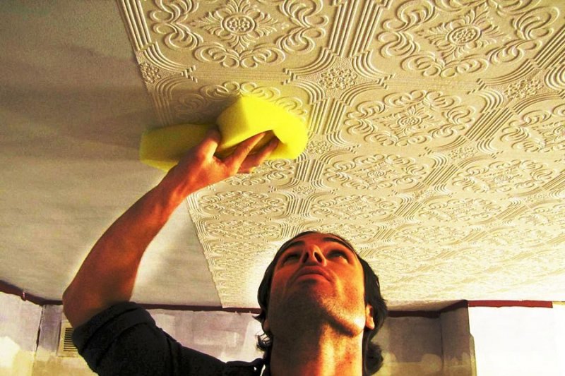 Прежде чем приступить к наклеиванию плитки, следует подготовить основание потолка.