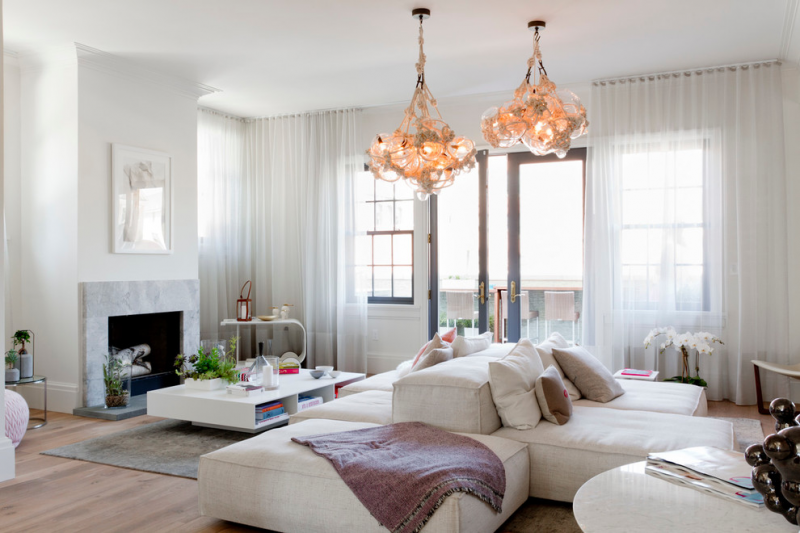 Красивая гостиная с дизайном в стиле фьюжн