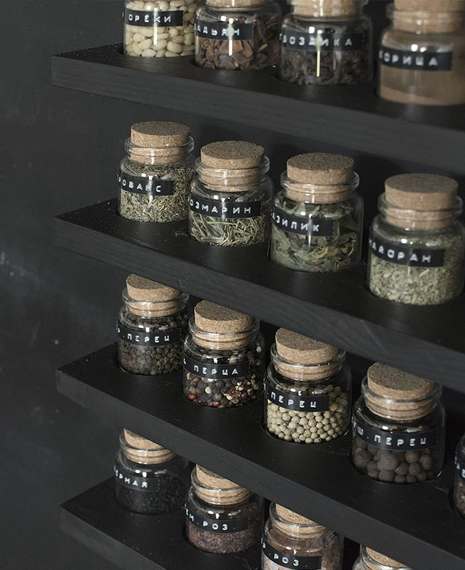 Банки для хранения специй — оригинальный декор в минималистском интерьере.