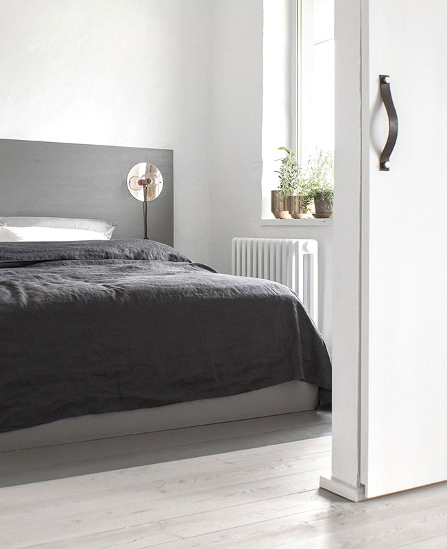 Второй этаж. Спальню разделяют раздвижные двери, они изготовлены из цельноламельных сосновых мебельных щитов. Ручки 1920-30-х годов взяты из петербургских коммуналок. В будущем здесь можно будет создать две комнаты.