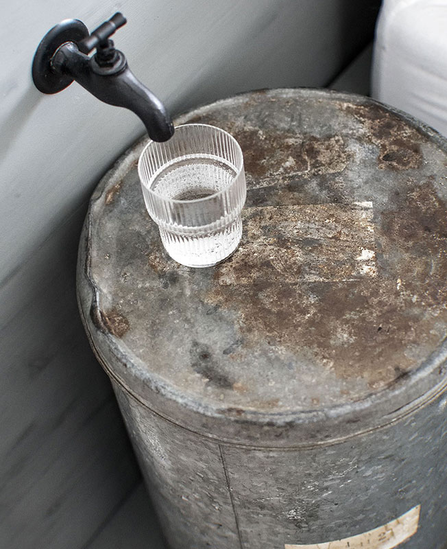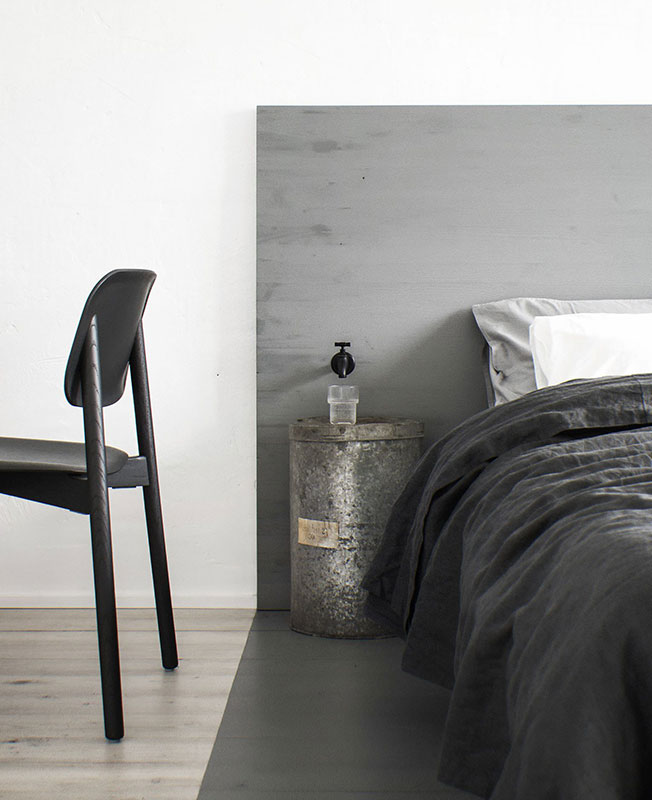 Вместо прикроватной тумбы используется оцинкованное ведро с крышкой, привезенное из Америки.