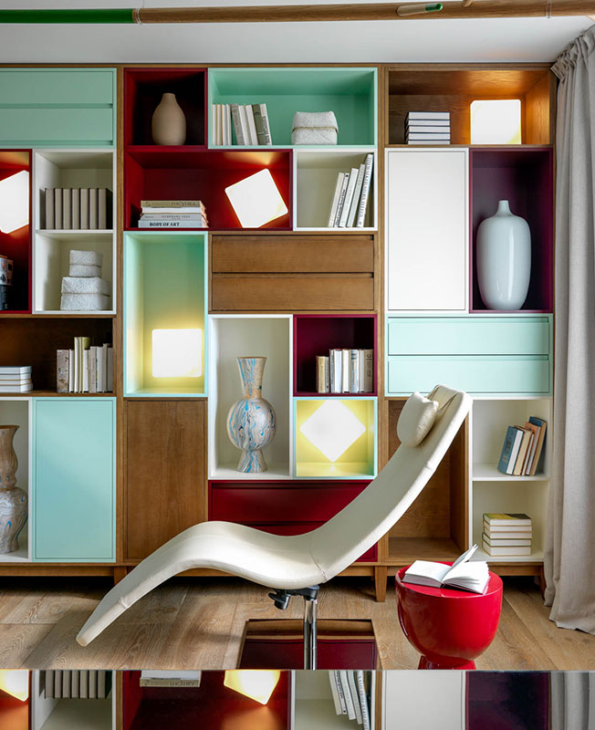 Но сперва нужно было позаботиться об удобной планировке. Чтобы обеспечить всем членам семьи приватность, спальню родителей с ванной комнатой, гардеробной и кабинетом разместили в одной части квартиры, а детскую — в противоположной.