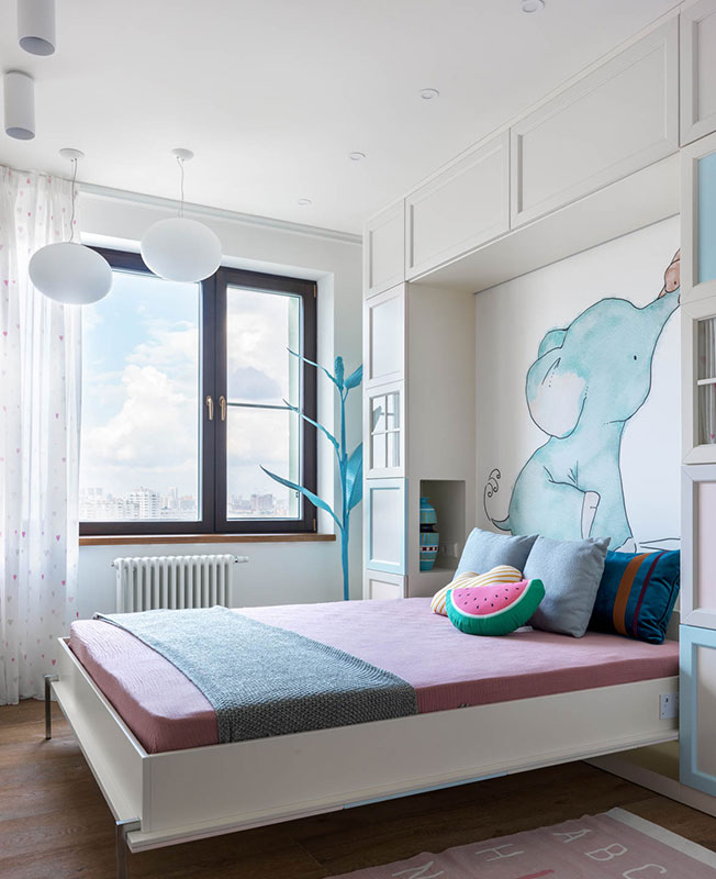 Детская комната. Кровать в шкафу сделана в столярной мастерской по эскизам Art Group. Подушки Enere It. Грузовик по дизайну Екатерины Вагуриной.