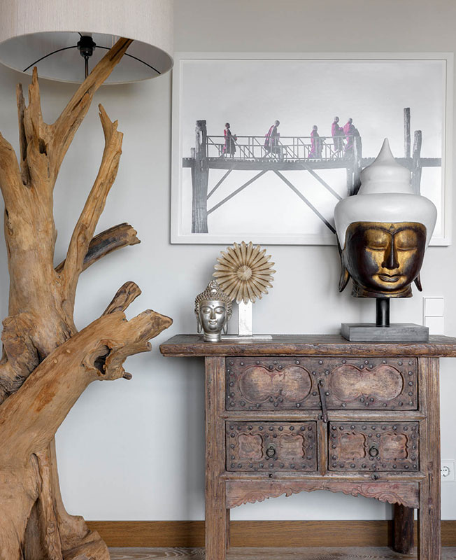 «У молодых хозяев этой просторной квартиры — кардинально разные интерьерные вкусы, — рассказывает дизайнер. — Супруги никак не могли прийти к «общему знаменателю»: одна сторона стремилась к хай-теку и минимализму, другая мечтала о лофте и этнических мотивах». Студии удалось их примирить, использовав лучшие элементы стилей, которые нравятся заказчикам.
