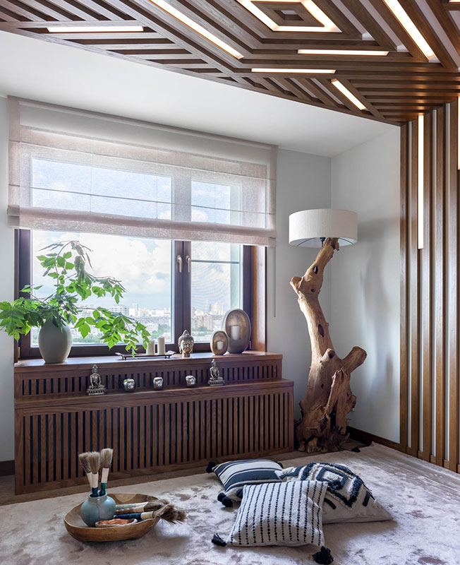 Комната для йоги. Торшер Natura Design. Аксессуары Moon Stores.