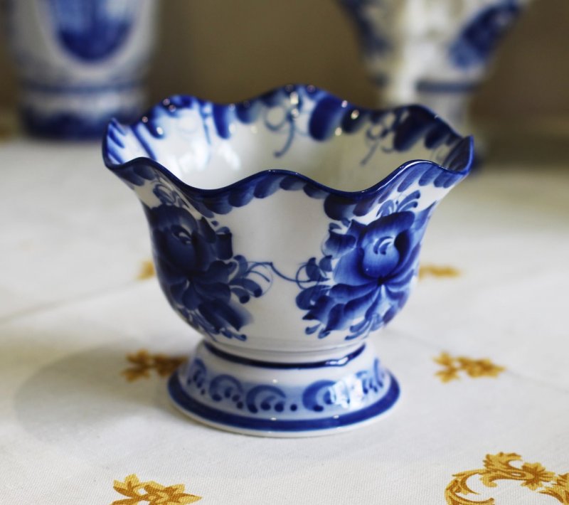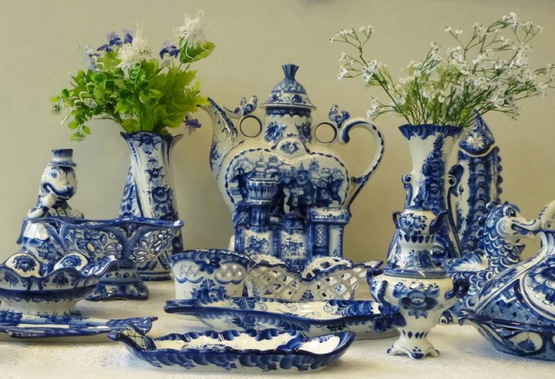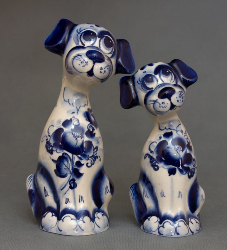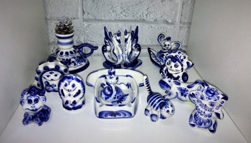 Коллекционеры фарфора высоко ценят декоративных кошечек, птиц, лошадей со всадниками, зайцев и медвежат, расписанных в стиле гжель. Такие миниатюрные украшения можно рассеять по квартире и парами расставить в разных комнатах. На самом деле, еще необожженные фарфоровые изделия окрашивают оксидом кобальта, который имеет черный цвет. После обжига вещество восстанавливается и становится синим. В подделках поверхность просто окрашивают обычными красками, которые впоследствии быстро «слезают», так как температурой они не закреплялись. Кстати, изделия обязательно подвергают двойному обжигу. После первой процедуры наносят глазурь, а затем закрепляют ее вторичной температурной обработкой. Из-за этого изделия получаются прочными и гладкими. Гжель — это не только вид росписи, это еще и знак качества.