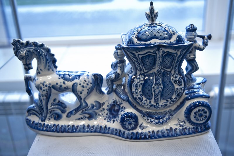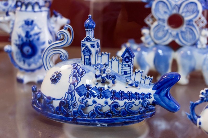 Гжельская волость славилась особым сортом глины, которую поставляли к царскому двору для изготовления алхимических (аптекарских) сосудов. Местные жители были мастерами гончарного дела, так как сырье для кустарного производства располагалось буквально под ногами. Даже Ломоносов восторженно отзывался об этой глине и чистоте мест, где ее получают. Ближе к началу XIX века в России насчитывалось уже 25 заводов по производству посуды и игрушек. В те времена поверхности лошадок, кукол, миниатюрных птичек, кувшинов, тарелок, статуэток расписывались фиолетовыми, синими и желтыми красками.