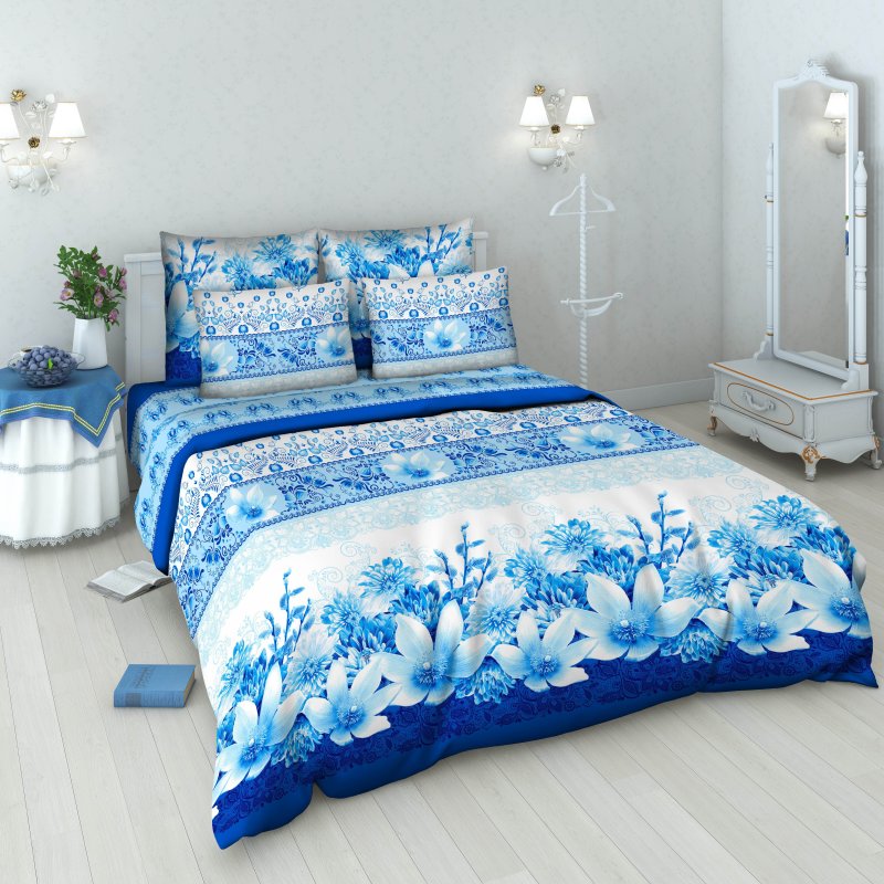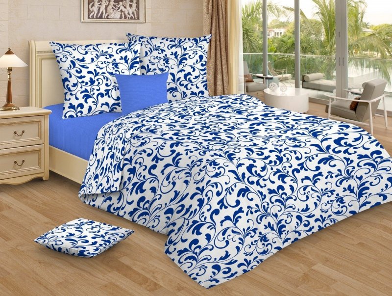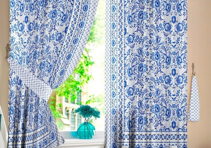 Гжельские розы, маки, васильки и райские синие птицы наносят на поверхности покрывал, наволочек, скатертей, штор, салфеток, пледов, полотенец и ковриков. Так как традиционно используется белый фон, смотрятся подобные детали интерьера очень легко, воздушно и ненавязчиво. Каждому оформителю известно, что большое количество мелких элементов сильно захламляет пространство. С гжелью это правило не работает. Возможно, потому что синий цвет обладает свойством «отдалять» предметы, визуально увеличивать расстояние до них, а может, причина все же кроется в сдержанном фоне, который делает узор более динамичным. Конечно, не стоит украшать текстилем с гжелью всю комнату. Достаточно всего пары крупных акцентов. К примеру, на кухне хватит штор, скатерти и пары салфеток или прихваток. Дополняют декор однотонным, полосатым сине-белым текстилем или отделочными материалами.