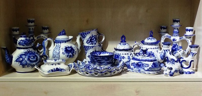 | Орнамент | К этой группе относят сине-белые «шашечки», «усики», «елочки», «жемчужины» и «капельки». Такой орнамент обычно пускают по ободку фарфоровых изделий. |