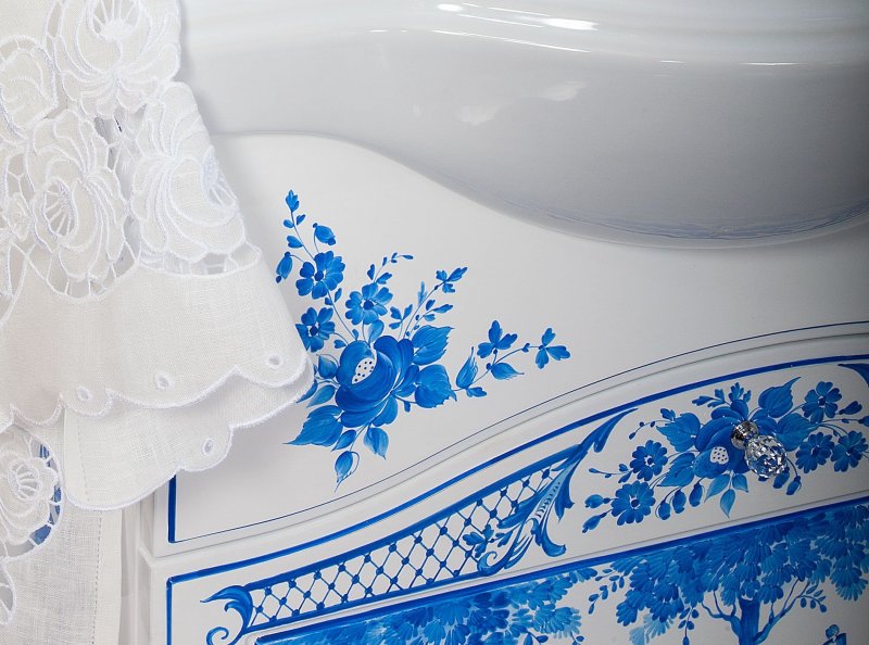 Мебель, фасады которой украшены гжельской росписью, считается смелым решением. Любой шкаф, комод или столик легко превратить в произведение искусства самостоятельно. Достаточно очистить поверхность мебели от старой краски, зашкурить, если это необходимо, окрасить в белый цвет, а затем нанести либо роспись, либо изображение с салфеток посредством техники декупажа. «Бабушкин» комод или шкаф получит шанс на вторую молодость и органично вольется в прованс, русский этнический стиль, кантри, эклектичные интерьеры.