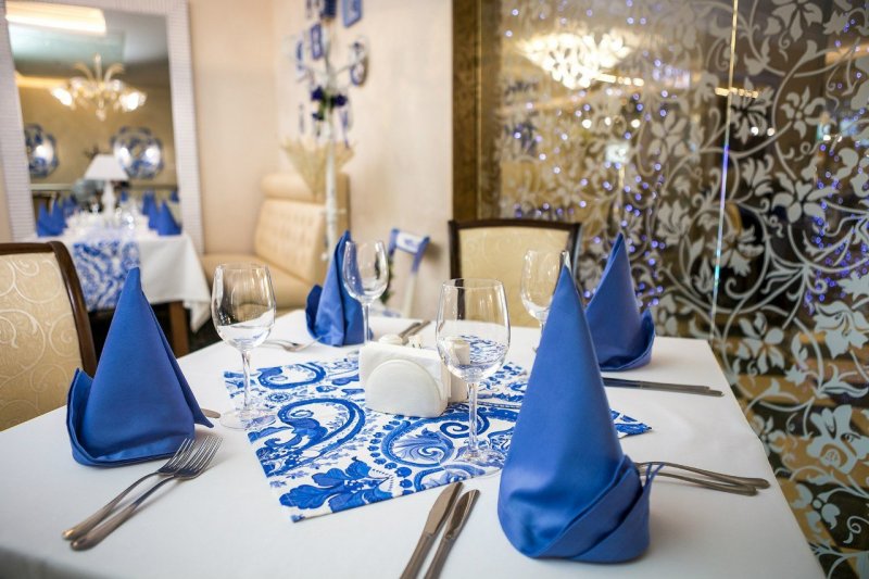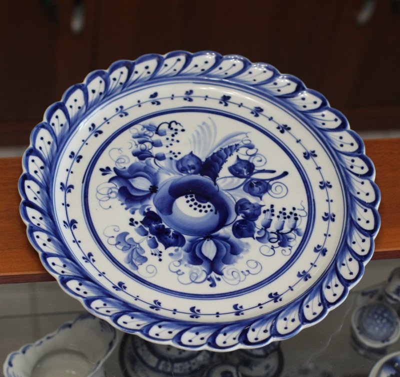 Гжельские узоры изначально использовались только для декорирования фарфоровых изделий, среди которых посуда занимала первое место. Конечно, подобные украшения будут смотреться уместно только на кухне, в столовой и гостиной. Тарелки можно повесить на стену, закрепить на подставках или художественно расставить на полках серванта, поместив в центр крупную супницу, кувшин или салатницу. По праздникам набор станет подлинным украшением накрытого стола и будет хорошо сочетаться с белыми скатертями, салфетками, живыми цветами в плетеных корзинках.