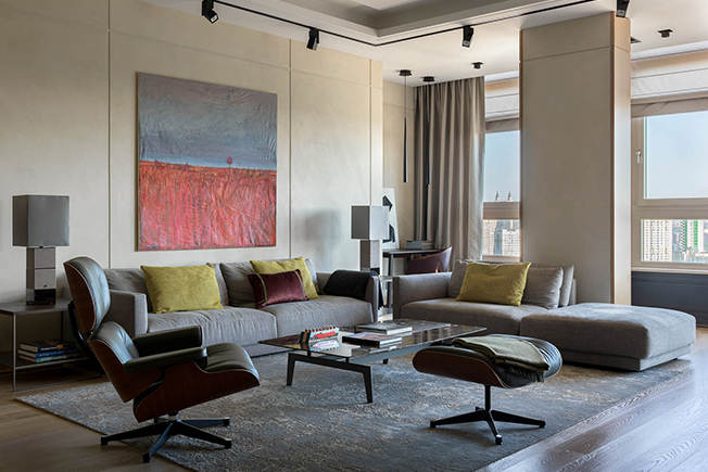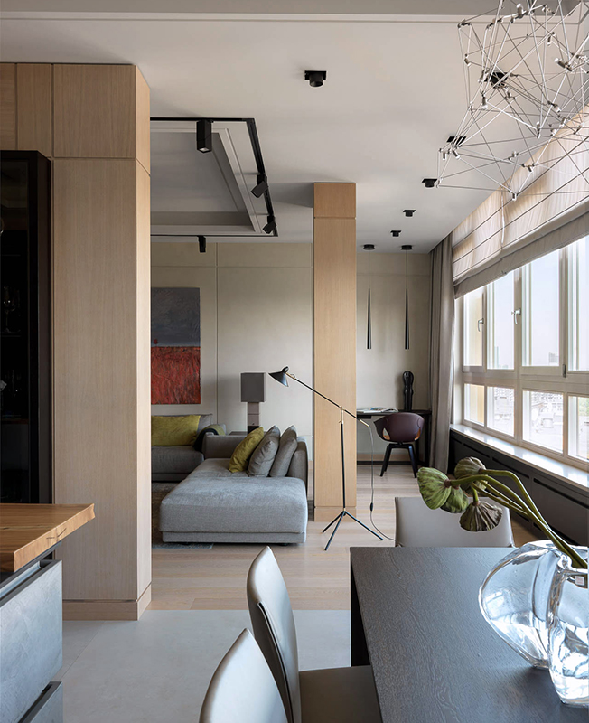 Расположенная в новом доме квартира площадью 160 кв. метров была «в бетоне», но архитекторам достался не просто «чистый лист». Арсений и Наталия уже проектировали жилье для этого заказчика. У них сложились доверительные отношения, поэтому в этот раз он пригласил их для консультации еще до того, как была куплена квартира.