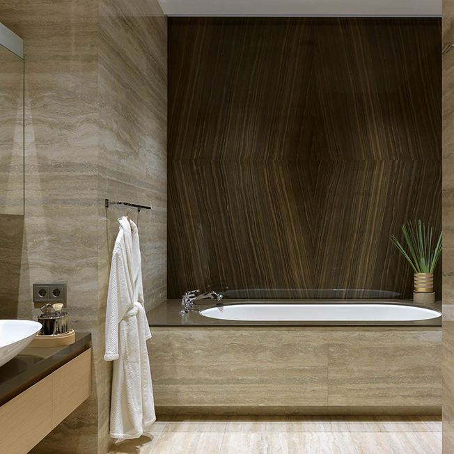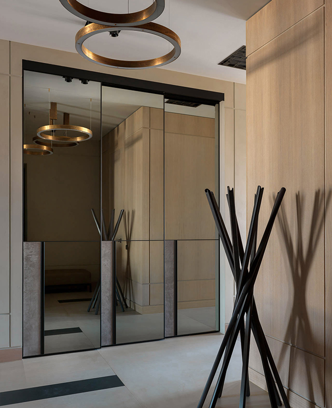 Что касается стилистики интерьера, то над ней не пришлось долго ломать голову. У клиента уже была готовая концепция. «Для его семьи мы работаем не первый раз, но хозяин нам сказал сразу: «Будем делать по-другому». Это означало, что интерьер будет современным, стильным, немного брутальным, но при этом лаконичным и уютным. В качестве примера он привел свой опыт проживания в Armani Hotel в самом высоком здании планеты Бурдж-Халифа, Дубай, ОАЭ.