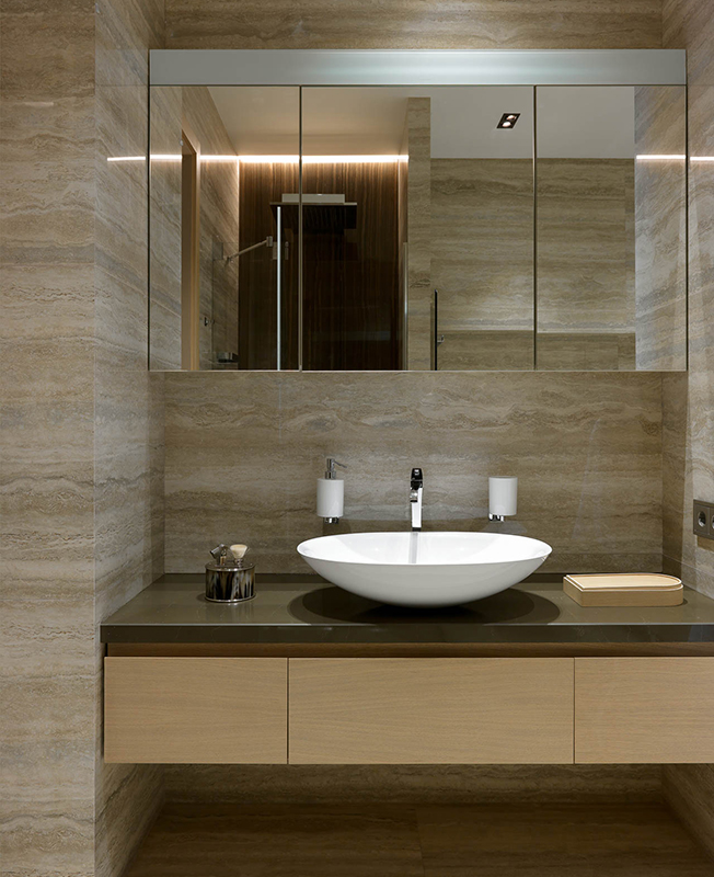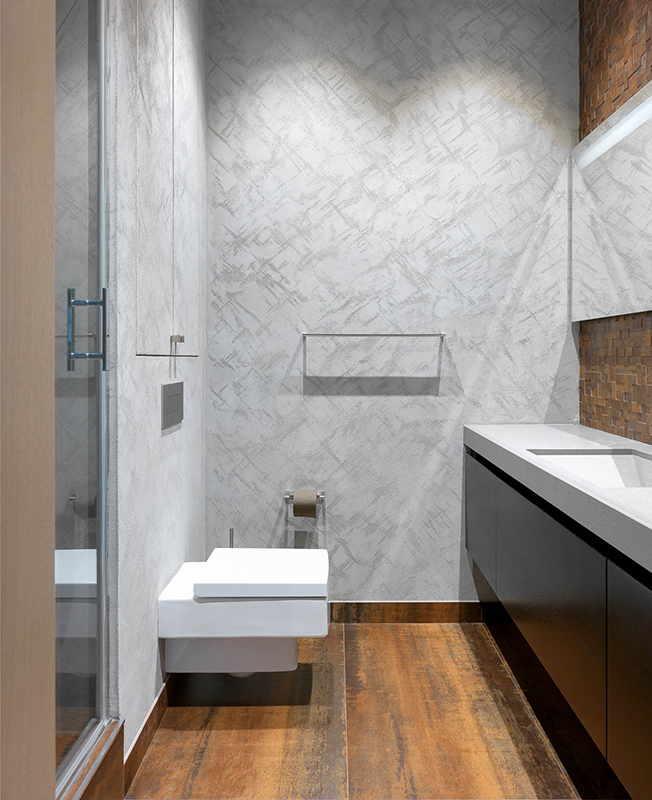 «В качестве необычных для себя решений, которые мы использовали на этом проекте можно назвать применение керамогранитных плит размером 150 х 300 см и толщиной 6 мм. Конечно, когда они уже лежат на полу и радуют глаз своими габаритами, минимальным количеством швов и классной имитацией бетона и натурального камня — это одно. Но советуем всем 10 раз подумать, хватает ли квалификации и опыта вашей рабочей бригады, габаритов проемов и лестничных маршей для заноса 3-метровых плит на последний этаж дома, запаса материала на случай непредвиденных обстоятельств (а они бывают всегда). Нам, можно сказать, повезло, но мы вовсе не уверены, что готовы через все это пройти еще раз. Поэтому, скорее всего, у нашего заказчика будет уникальный пол!»