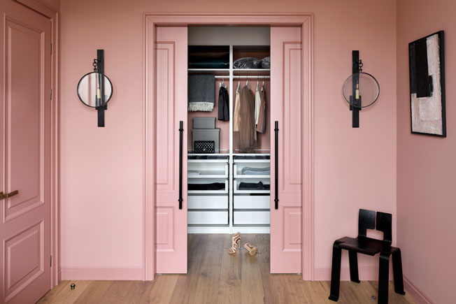 «Чтобы добиться большей глубины, мы комбинировали оттенок Tuscan Pink от Zoffany с более светлым, акварельным China Clay от Little Greene, — вспоминает Олеся Федоренко. — Для второй спальни выбрали обои ручной работы мятного оттенка. Рисунок с птицами выполнен художником по готовым и поклеянным на стены обоям.