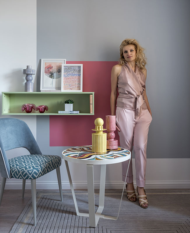 Несмотря на ограниченный бюджет, в проекте есть интересные дизайнерские предметы. Например зеркало и тумбочка Kartell или кровать Bonaldo были удачно куплены на распродажах. Много предметов от португальского бренда Mambo Unlimited Ideas — действительно, он предлагает немало интересных идей. «Я увидела эту компанию на выставке в Милане, она стала для меня открытием, да и цены у нее приемлемые». Подобные акцентные вещи, по мнению Ольги, обогащают пространство: оно уже не кажется таким маленьким, обретает оригинальнсть и стиль.