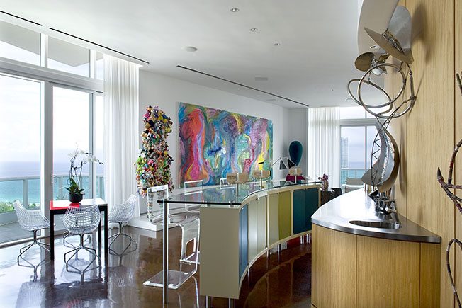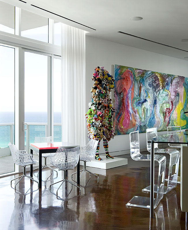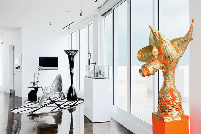 Пентхаус в Майами оформила для четы коллекционеров Джуди Мейл. Здесь кресла и столы не уступают в артистизме скульптурам и картинам.
