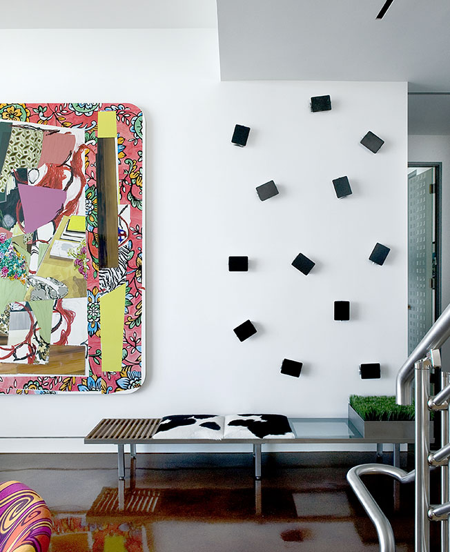 Несмотря на недавнюю увлеченность артом, хозяева собрали интересную коллекцию. В ней нет штампов — выбор работ отражает индивидуальный вкус. Обширна география авторов: японец Макото Аида, представитель Лейпцигской школы Нео Раух, Эль Анацуи, который родился в Гане и сделал карьеру в Нигерии. Разнообразны и техники. Тот же Анацуи использует сплющенные алюминиевые банки, крышки, проволоку. Художница под псевдонимом Swoon — линолеум, крафт-бумагу, тесто и доски, найденные в доме XIX века в Нью-Орлеане. Израильтянка Донна Розенталь мастерит фигурки из страниц, вырванных из любовных романов.