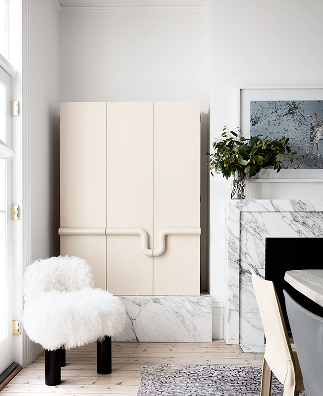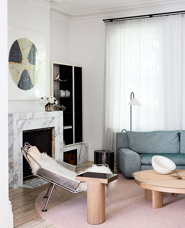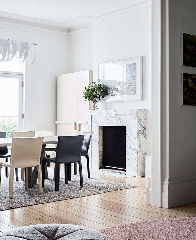 Дизайнер Фиона Линч, Fiona Lynch Interior Design, преобразила викторианский таунхаус в пригороде Мельбурна. «Краткий бриф нашего клиента заключался в том, чтобы создать пространство, в котором можно расслабиться, но также и развлечь гостей, — объясняет Фиона Линч. — При перепланировке столовой и гостиной мы играли с текстурами, чтобы создать привлекательное пространство, подходящее для различных целей». С этим клиентом студия Fiona Lynch Interior Design работает не в первый раз. Проект дома в районе Южная Ярра был разработан еще несколько лет назад, успел отлежаться и «созреть». Одной из первостепенных задач было сделать помещения визуально светлее и уютнее, поскольку небольшие окна и высокие деревья ограничивают доступ дневного света. «Важно было по-другому взглянуть на то, как пространство ощущалось ранее», — комментирует Фиона. Чтобы превратить интерьер в оазис спокойствия, дизайнер соединила сложные цвета, выразительные текстуры, дорогие материалы, изящные предметы мебели и оригинальные, необычные детали. Деревянные полы побелили, а стены окрасили в светлый цвет, создающий эффект чистого холста. Он стал фоном для сложных припыленных оттенков в природной гамме. «Мы играли с мягкой палитрой розовых и зеленых тонов и разными текстурами, такими как обивка дивана и плетение ковра, напоминающие твид», — говорит дизайнер. Гостиную и столовую украшают камины, по обеим сторонам которых разместили шкафы и стеллажи, выполненные на заказ. Открытые полки из окрашенного дуба облицованы бронзовыми листами. Опорами для мебели служат мраморные блоки, расцветка которых соответствует отделке каминных порталов.