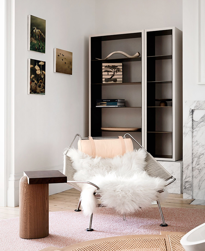 Деревянные полы побелили, а стены окрасили в светлый цвет, создающий эффект чистого холста. Он стал фоном для сложных припыленных оттенков в природной гамме. «Мы играли с мягкой палитрой розовых и зеленых тонов и разными текстурами, такими как обивка дивана и плетение ковра, напоминающие твид», — говорит дизайнер.