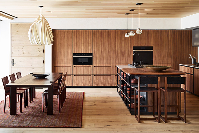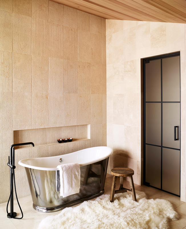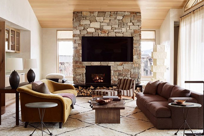 Дизайнеры лос-анжелесской студии Commune и архитекторы Carney Logan Burke черпали вдохновение в знаменитых источниках XX века: горнолыжных проектах Карло Моллино, Шарлотты Перриан, а также в сценах из таких фильмов, как Belle du Jour и Charade. Интерьерщики внимательно изучили скандинавский дизайн mid-century modern и прекрасно знают творчество Джорджа Накашимы и Жана Пруве.